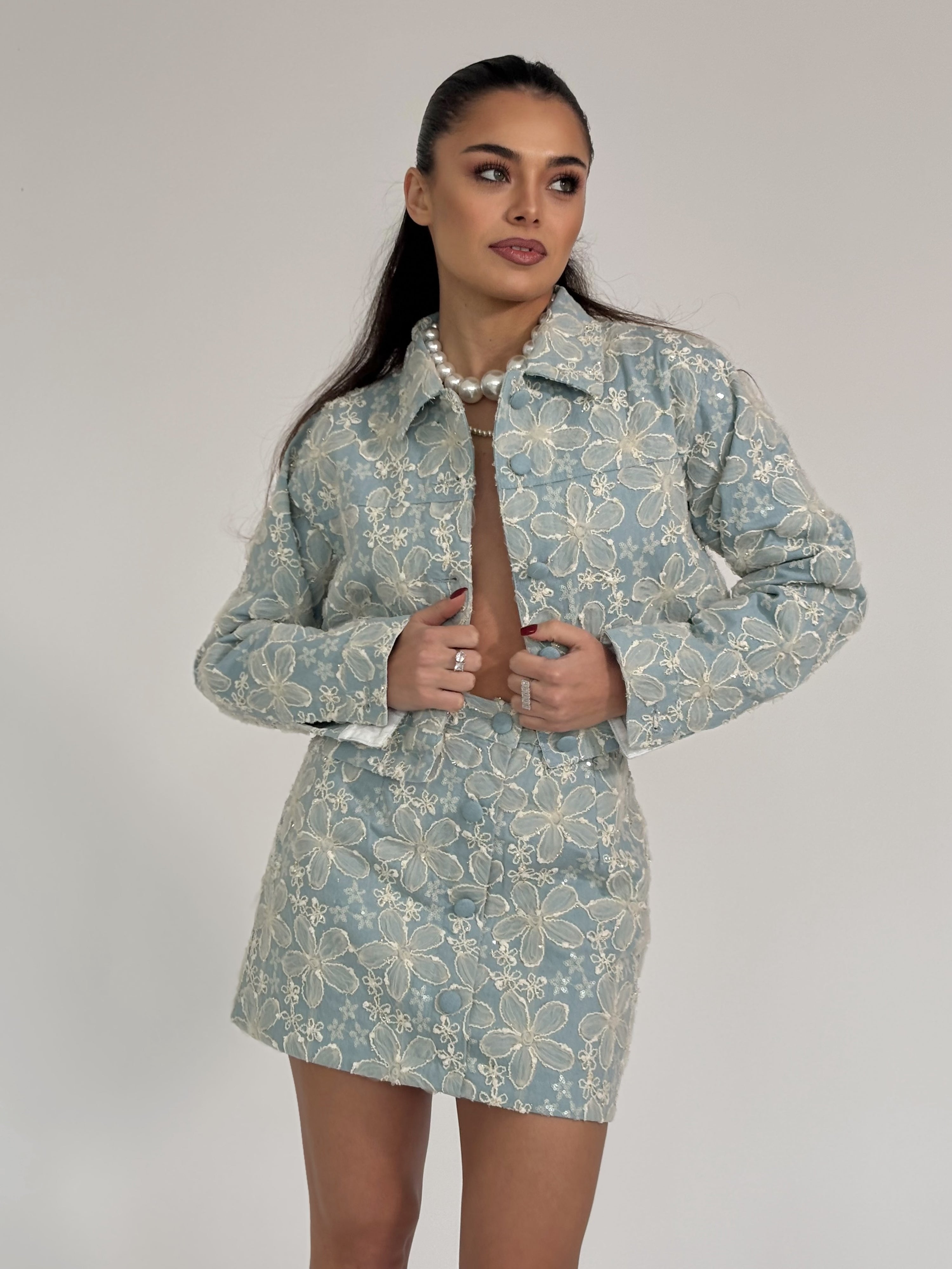 Дънков комплект Beatris с цветя от органза