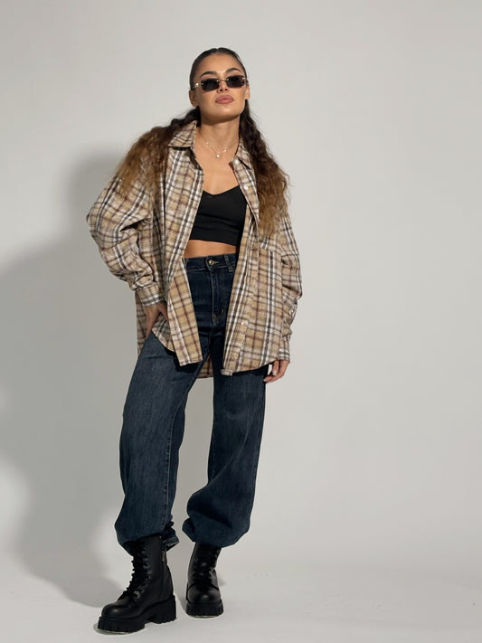 Карирана оувърсайз риза Miliva с камъни