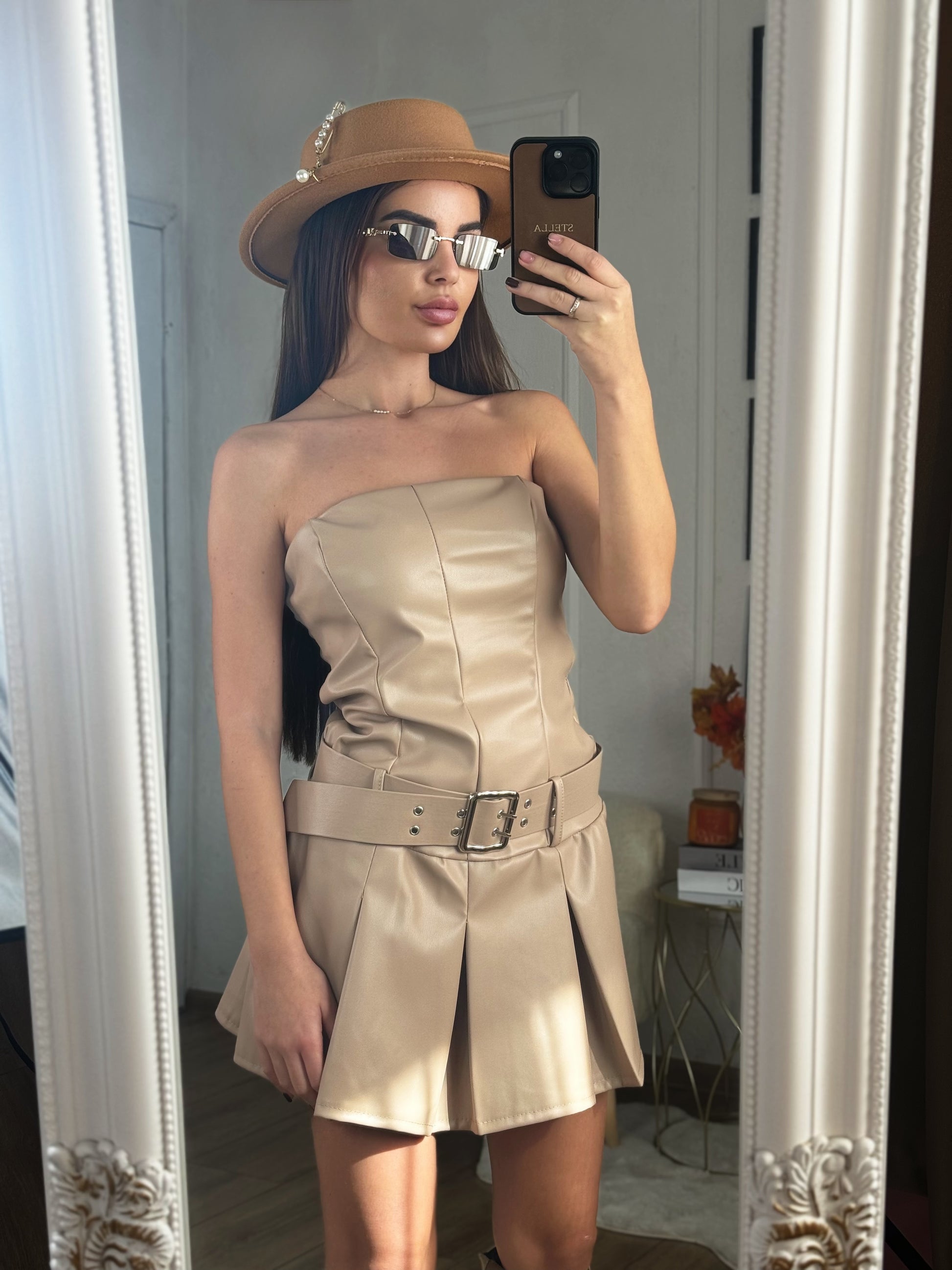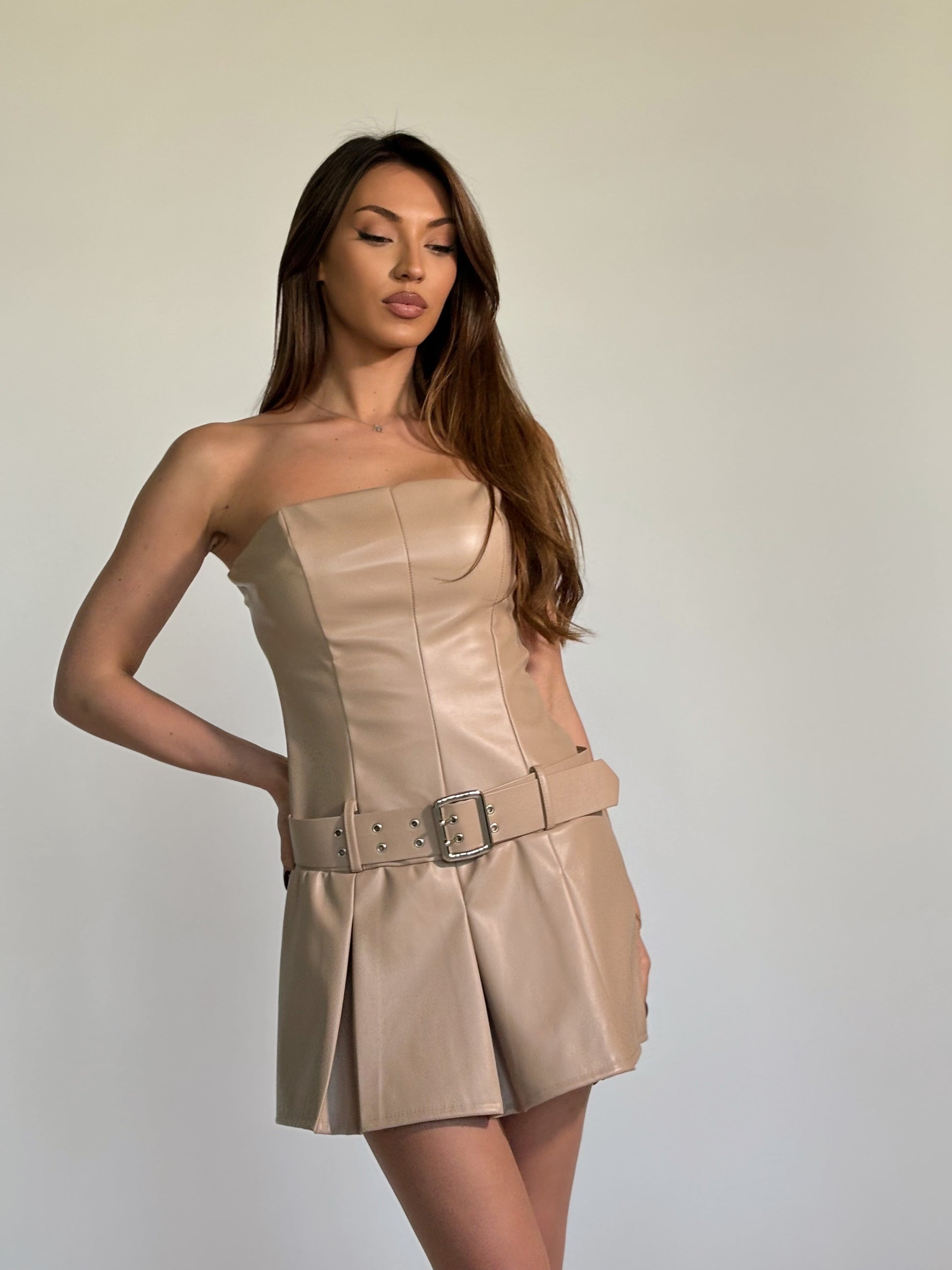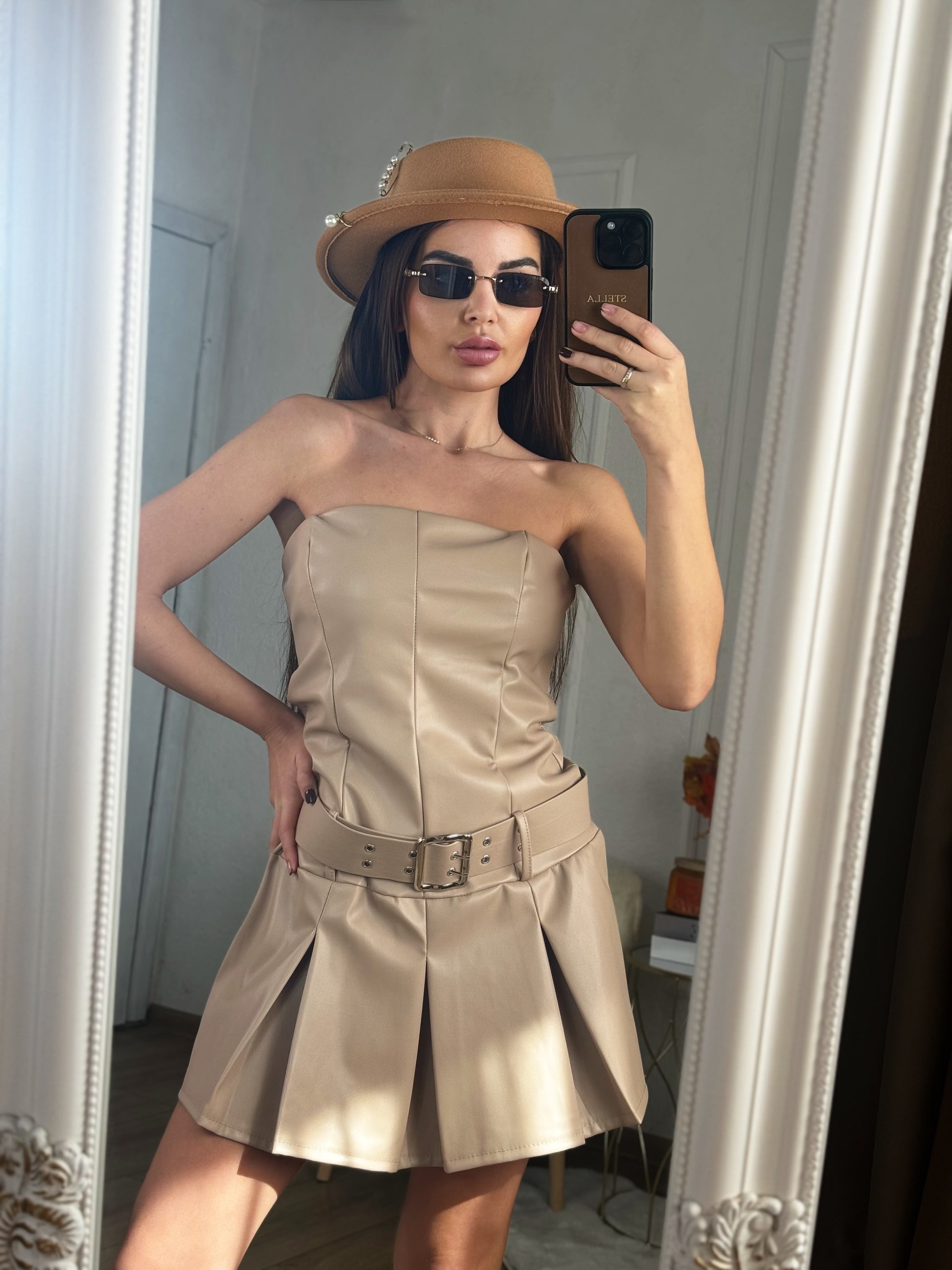 Кожена рокля Derita с колан