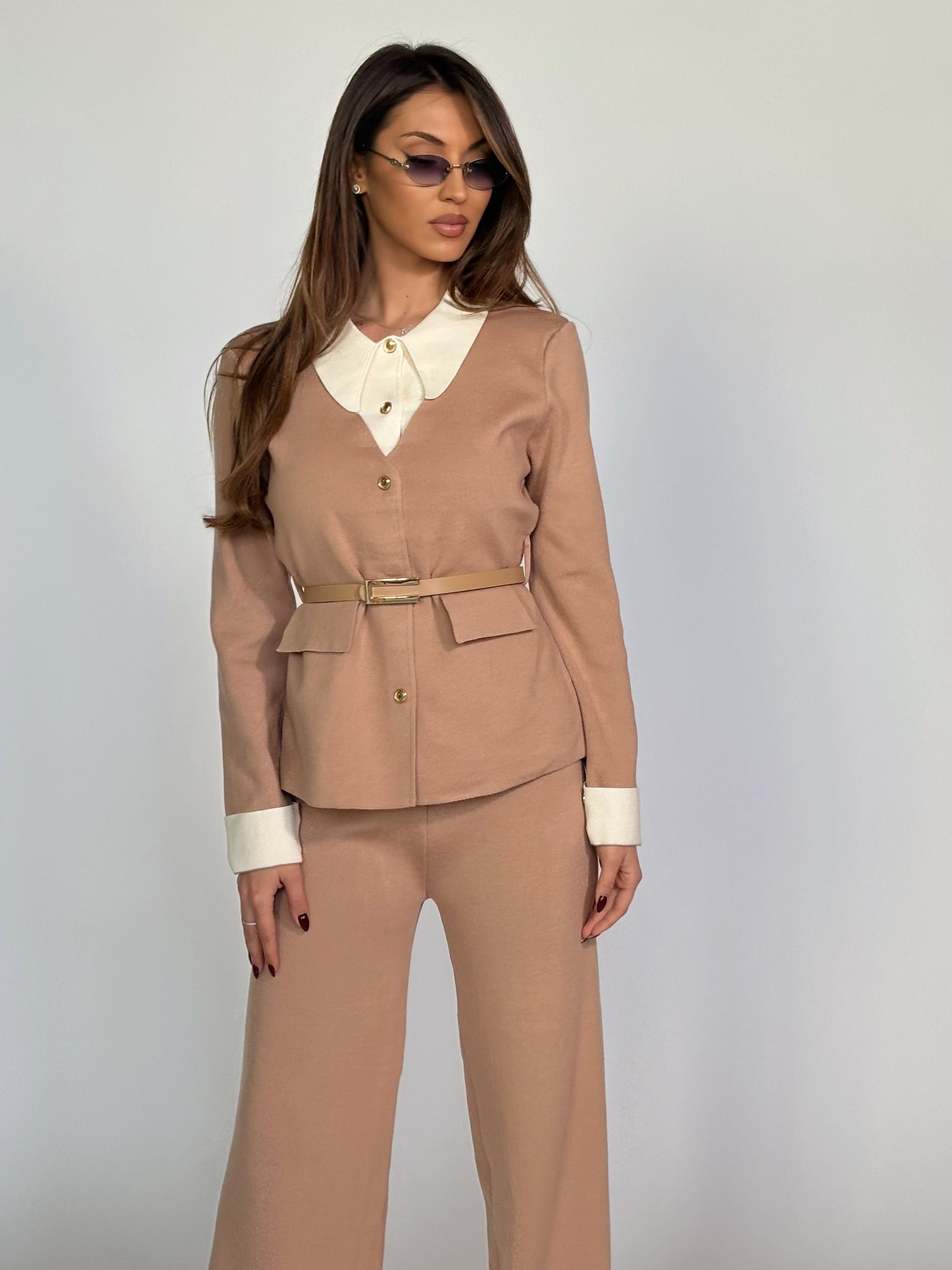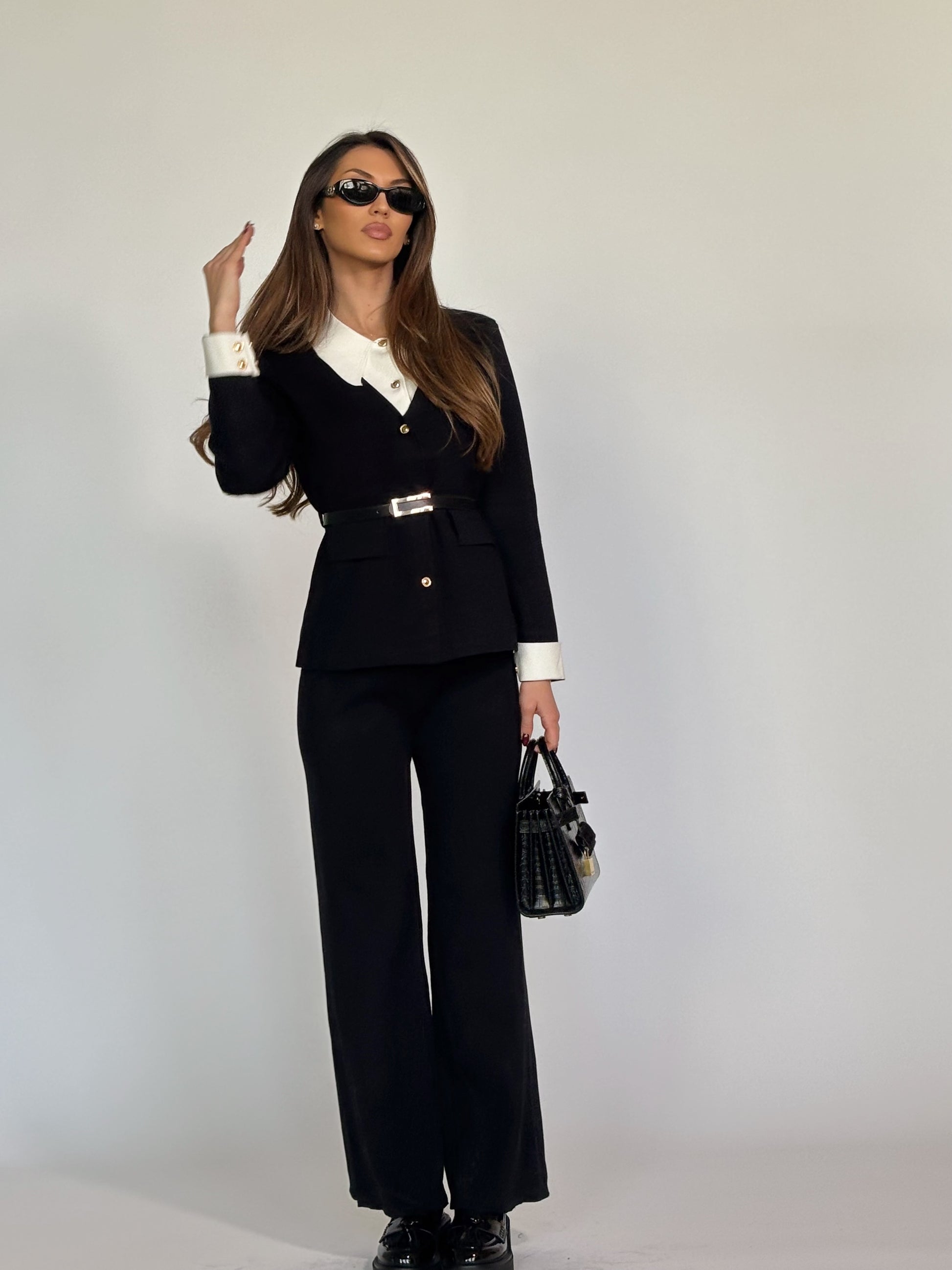 • Комплектът се състои от горна част, панталон с права кройка и колан