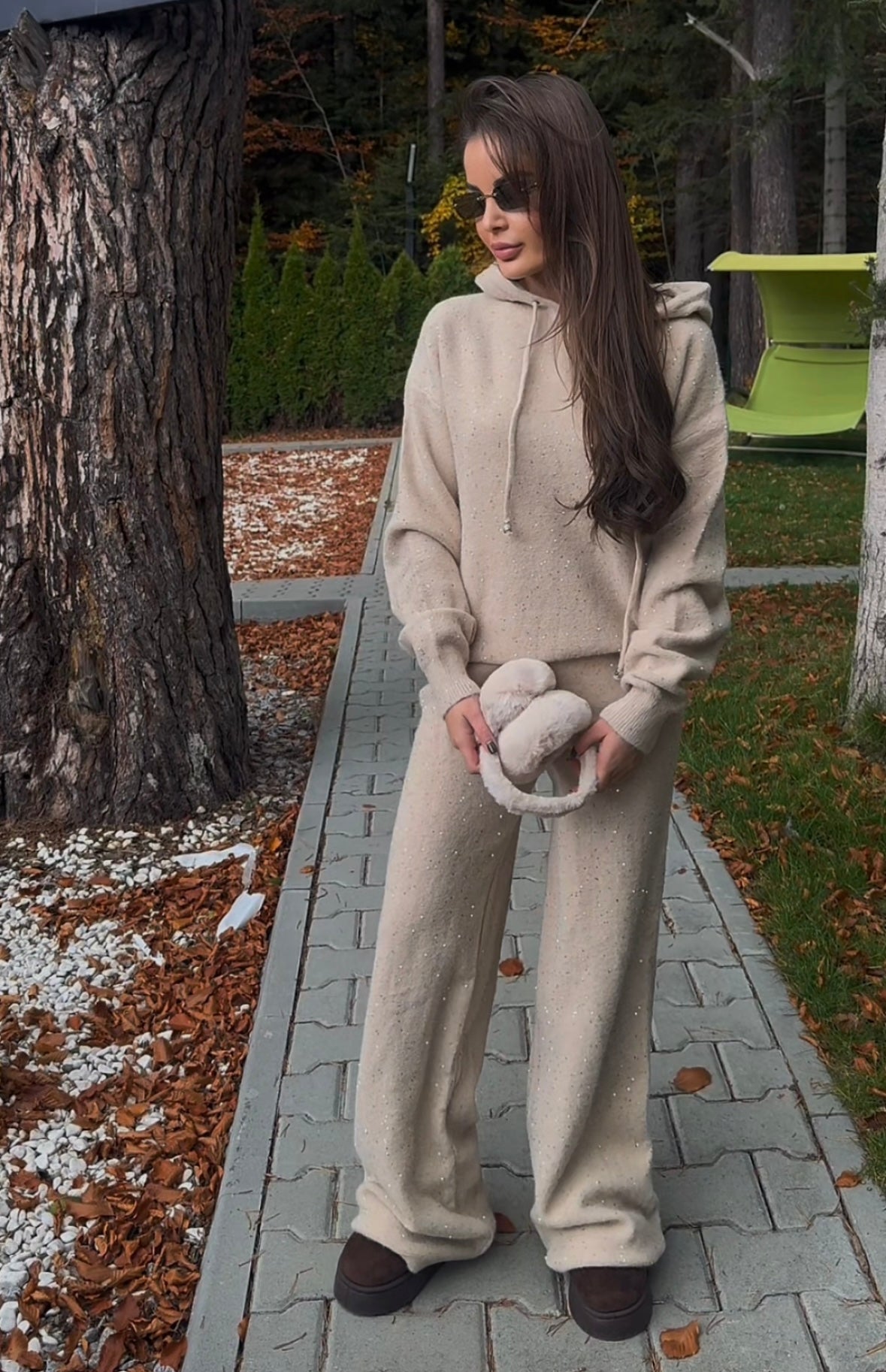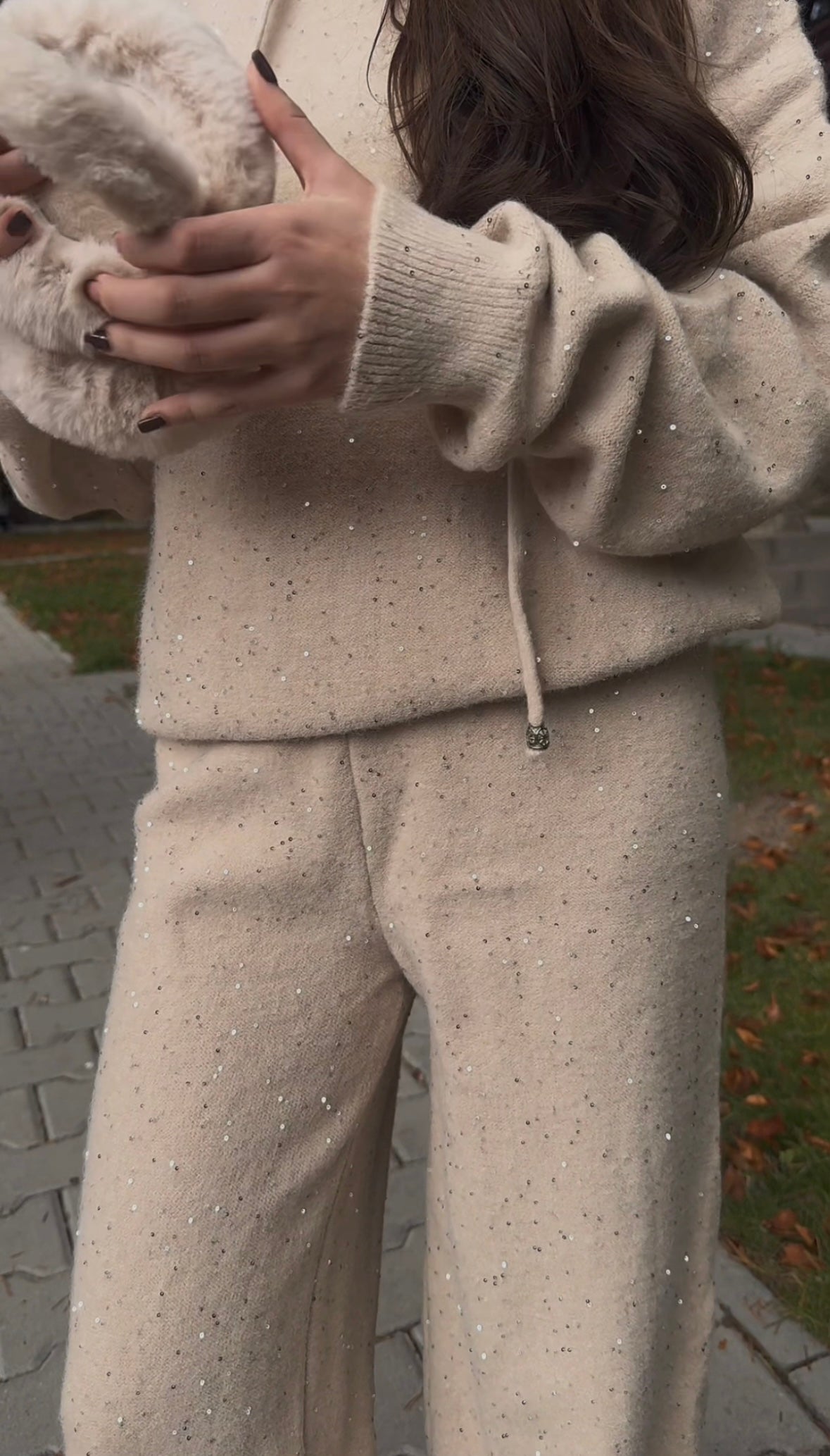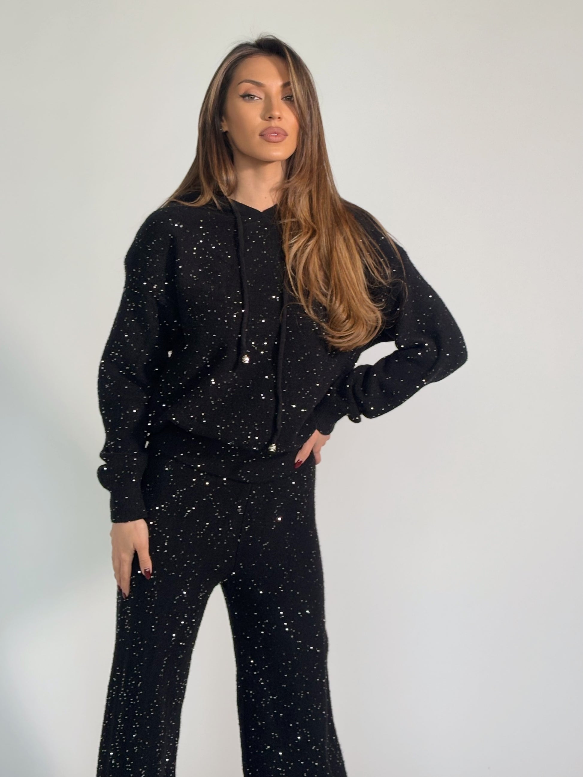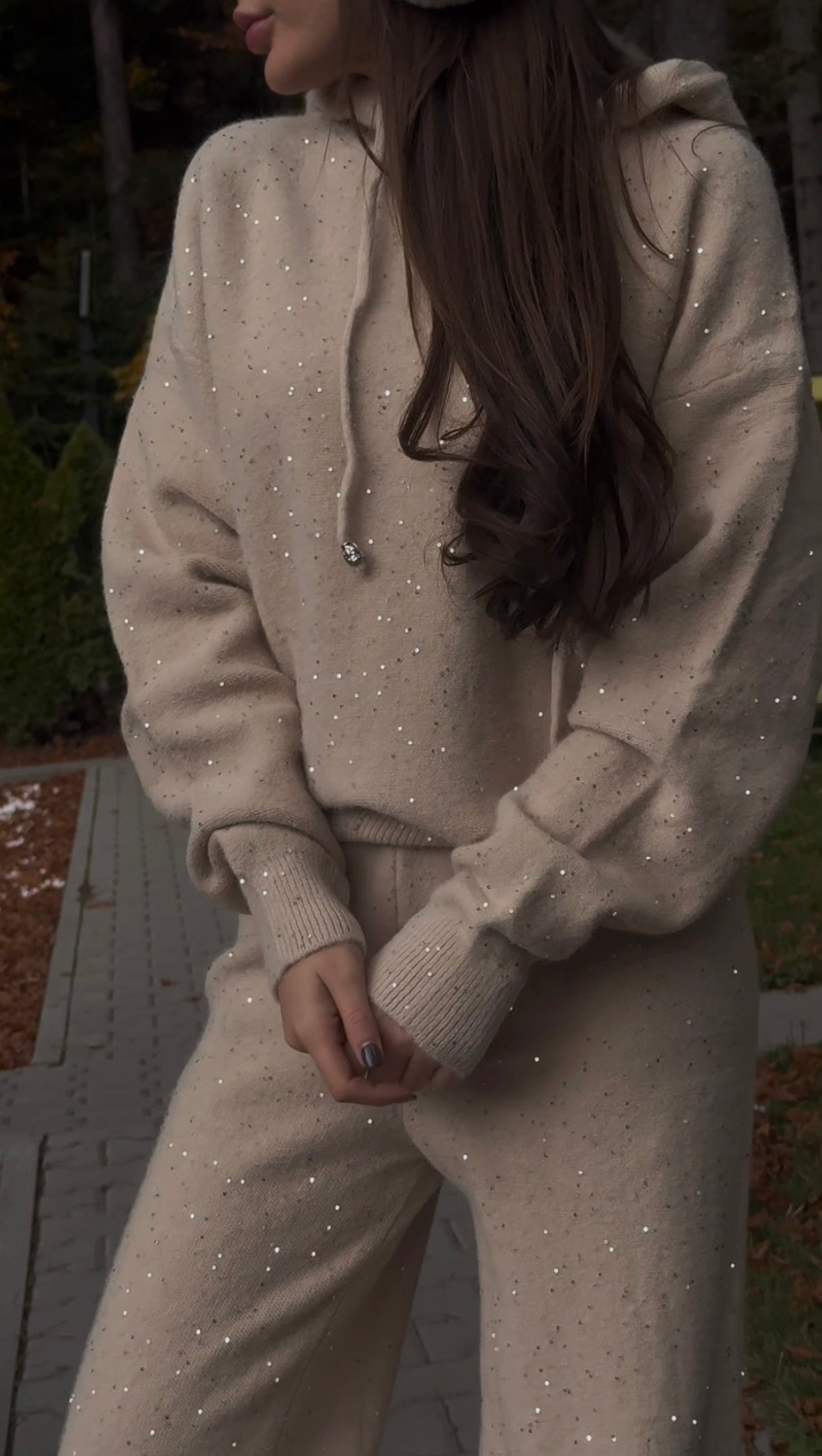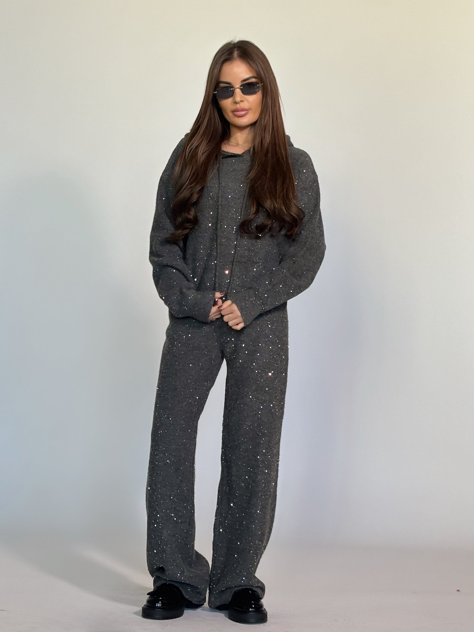 Комплект Shining от плътно плетиво с качулка