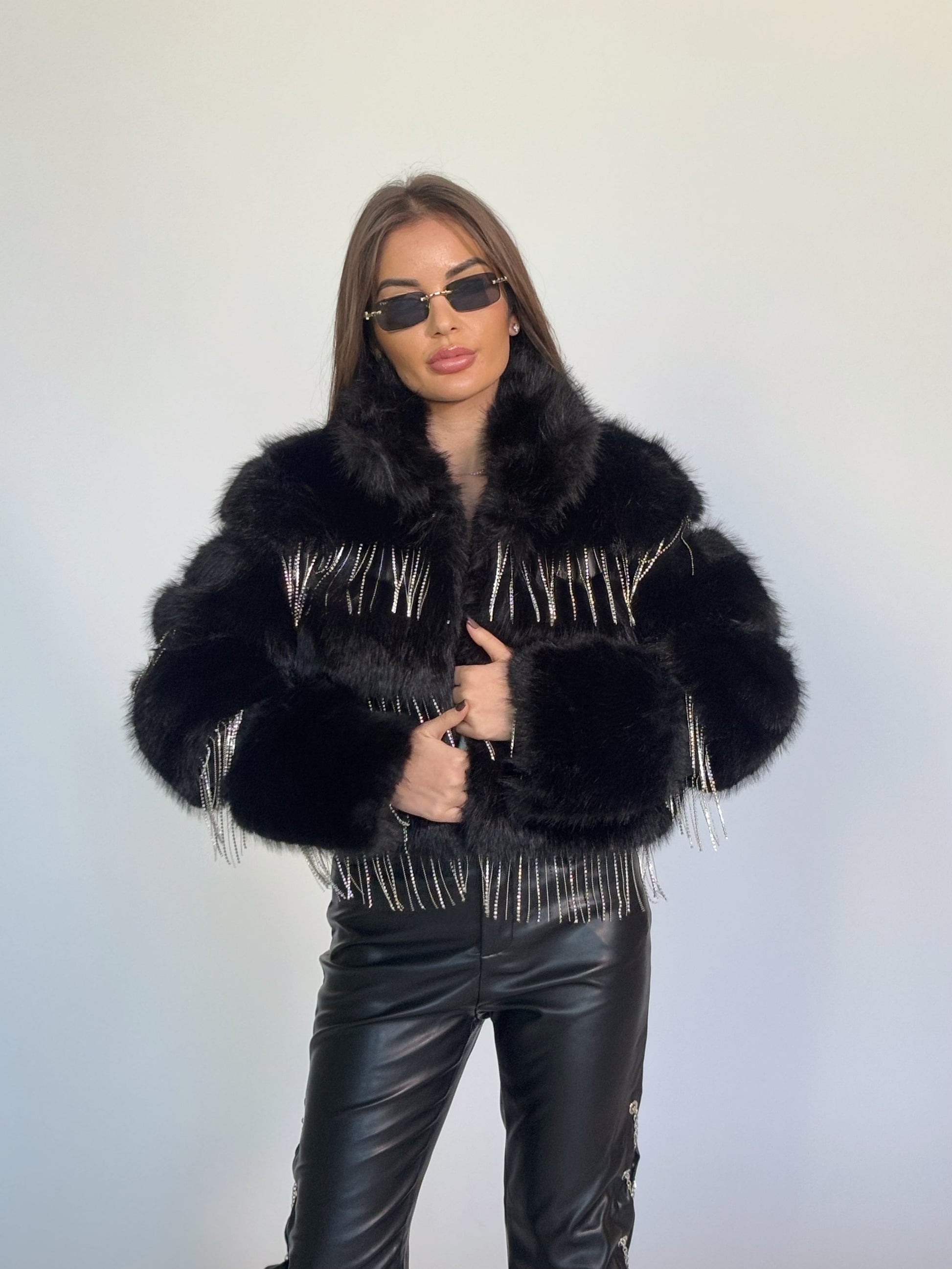 Палто Lovita с косъм и камъни