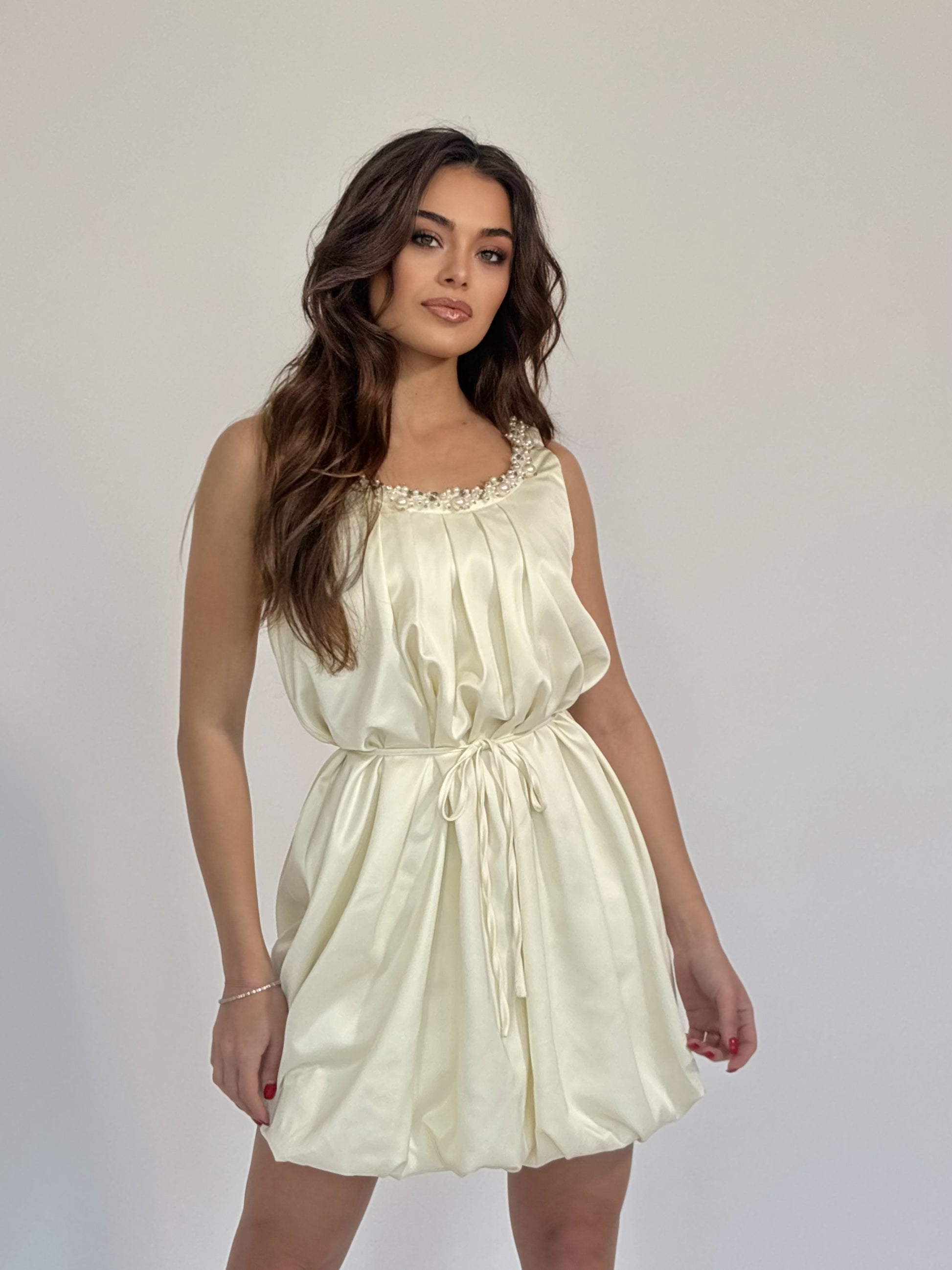 Сатенена рокля с перли Corina
