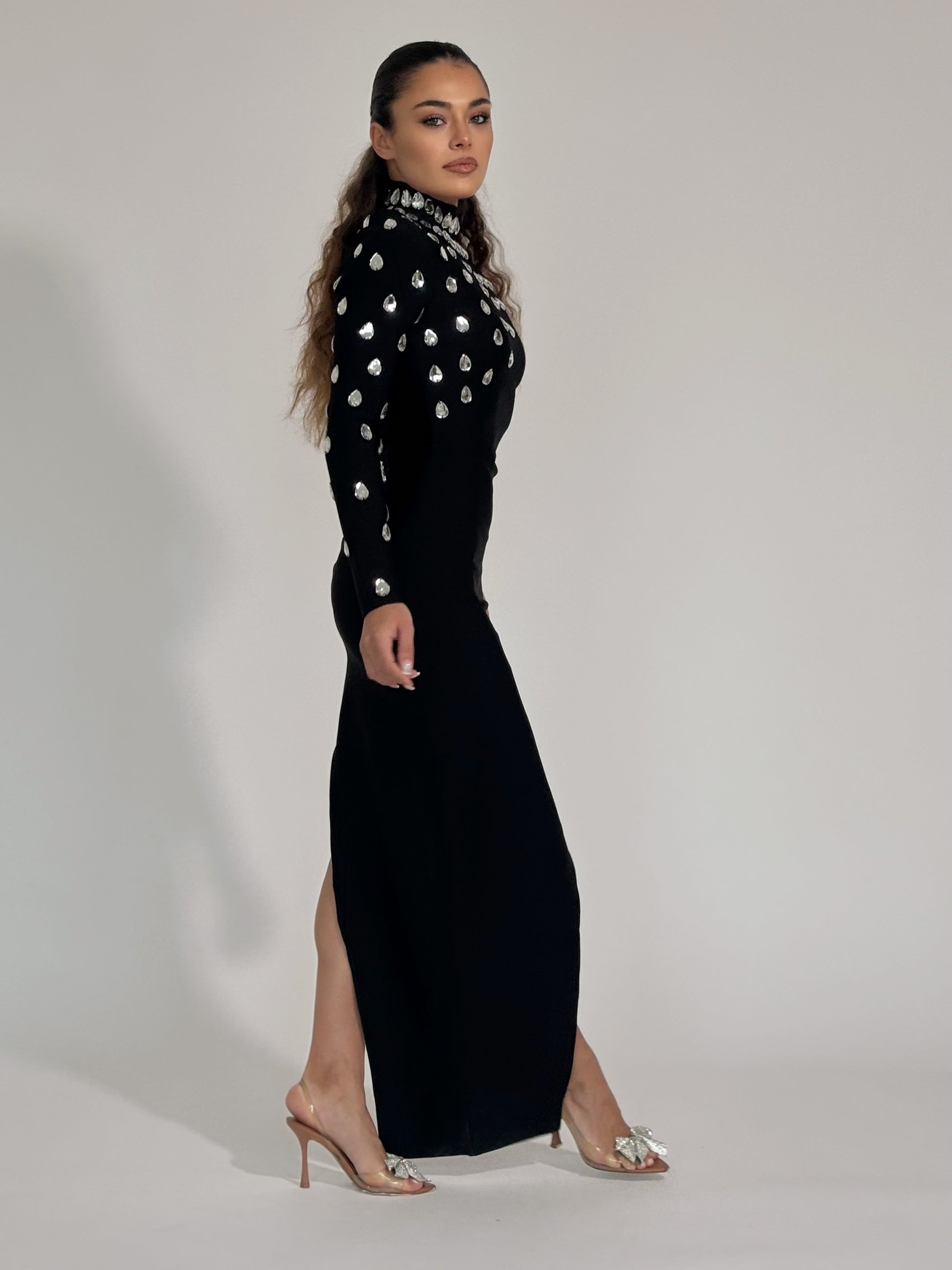 • Има големи камъни, акцентирано в част от роклята