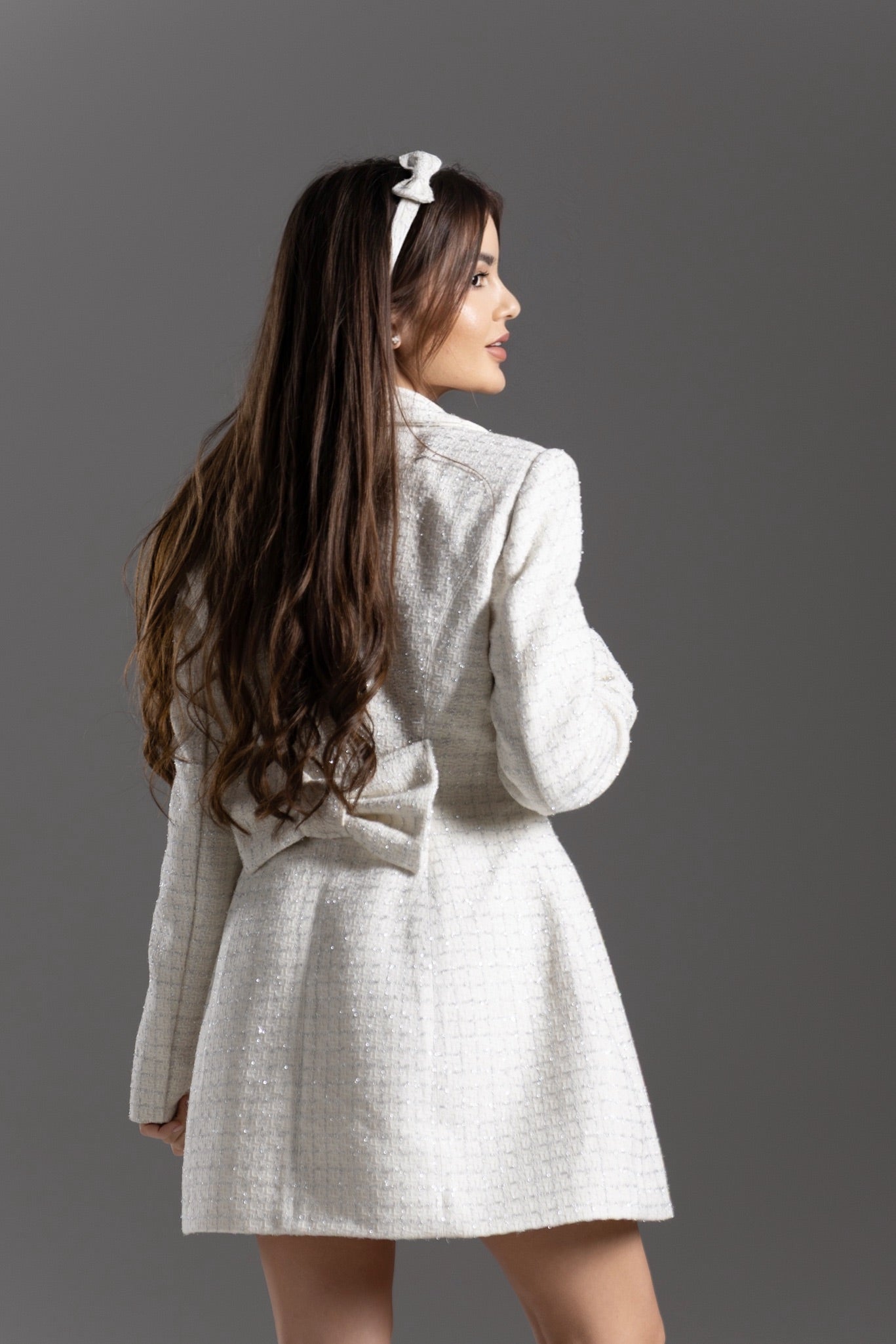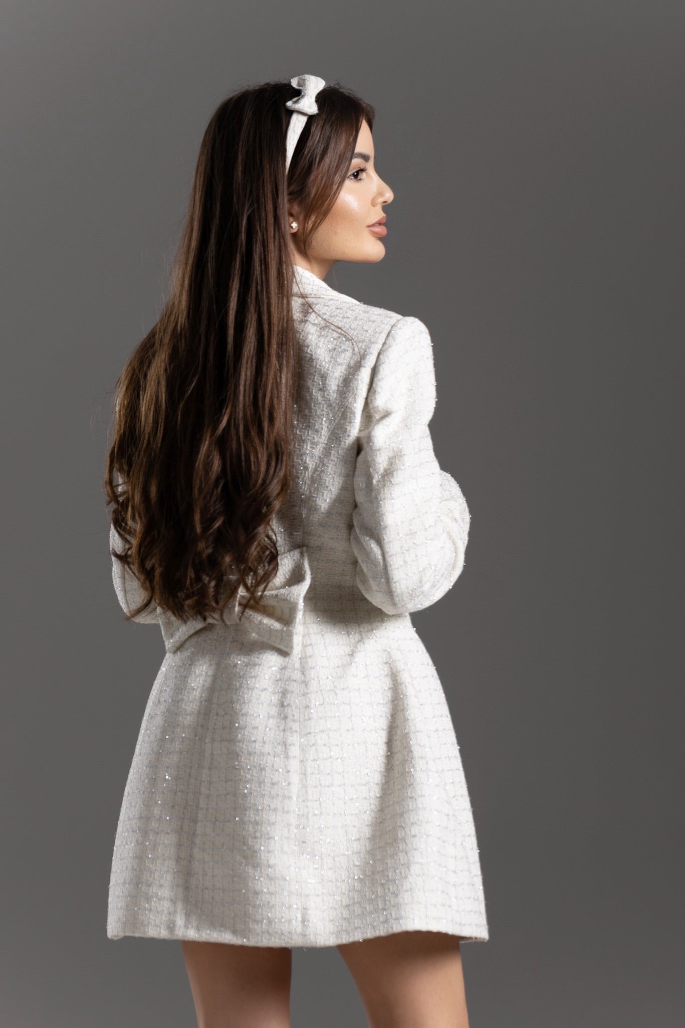 - Стела е висока 157 см и позира с размер С