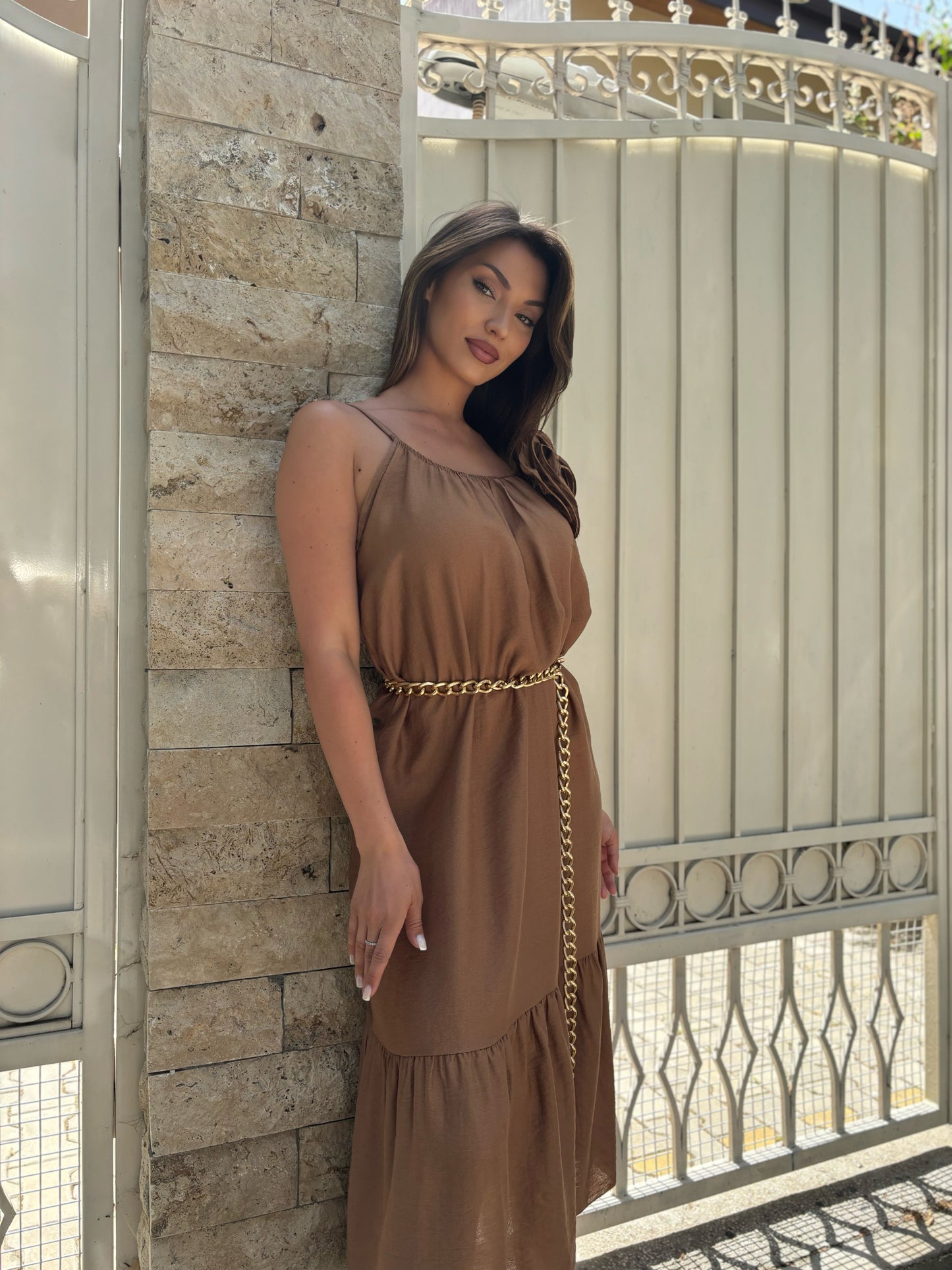 - Лека рокля с регулиращи се презрамки и джобове: 87% вискоза; 13% полиестер